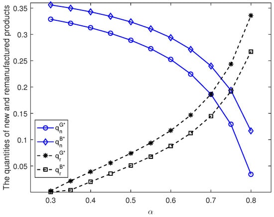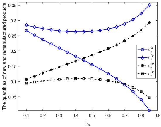 The quantity of new products is , in which , so . The demand for remanufactured products is calculated by means of the same process. □