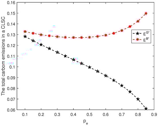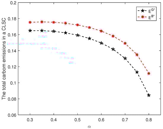 Corollary 3 shows that, due to the implementation of the carbon cap-and-trade regulations, the OME increases investments in carbon emission reduction to reduce carbon emissions released by new products. Furthermore, the lower-carbon advantage of remanufactured products declines. Therefore, the demand for new products increases, whereas the demand for remanufactured products decreases. The reduction in carbon emissions per unit new product motivates the OEM and AR to further reduce the price of both products, thus increasing the total demand for new and remanufactured products. Consequently, an increase in the level of investment in the carbon emission reduction technologies leads to an increase in the total demands for new and remanufactured products, resulting in an increase of the total carbon emissions in a CLSC.