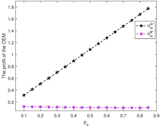 The optimal level of the OEM’s investment in carbon emission reduction technology under the benchmarking rule is higher than that under the grandfathering rule, that is . Meanwhile, the gap between the OEM’s optimal level of investment in carbon emission reduction technology under carbon allocation rules becomes larger with increase in the carbon trading price .