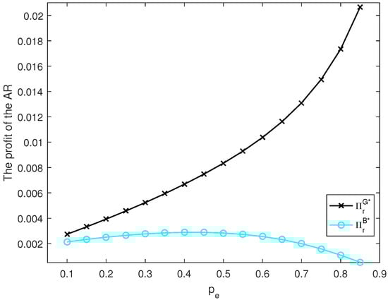 In a no-remanufacturing scenario, consumer willingness to pay for a remanufactured product () is low. Therefore, the remanufacturer does not enter the market to participate in remanufacturing activities due to the low demand. In a partial-remanufacturing scenario, consumer willingness to pay for a remanufactured product () is relatively higher. The demand for the remanufactured products in the market attracts the AR to engage in remanufacturing activities. In a full-remanufacturing scenario, environmentally conscious consumers exhibit a higher preference for remanufactured products over new ones. As a result, the OEM withdraws from the market and ceases to produce new products. Corollary 1 also summarizes the purchase behavior of consumers in the three scenarios.