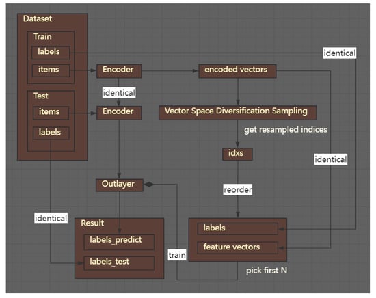 The model utilized in this study consists of three primary components: Encoder, Decoder, and Outlayer. The Encoder component is responsible for transforming the data into feature vectors, which are then subjected to Vector Space Diversification sampling. This sampling process reorganizes the dataset, and the first N samples are selected for training the model. Figure 1 depicts the Encoder-Decoder-Outlayer framework, which comprises an Encoder, a Decoder, and an Outlayer.