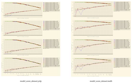 F1-score, accuracy, precision, and recall of the yelp and imdb datasets.