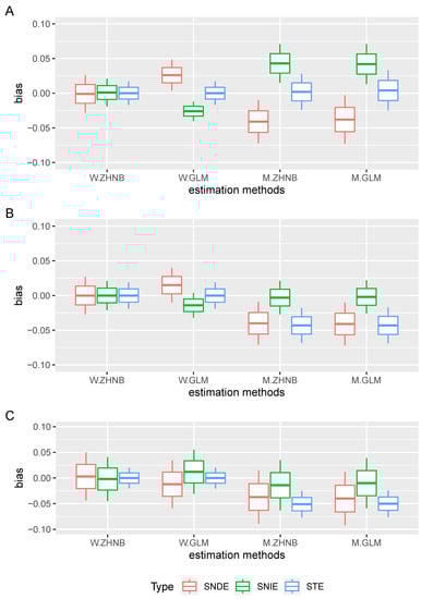 With the parameter estimates, we are able to calculate SNDE, SNIE, and STE and their empirical confidence intervals using bootstrapping. The detailed algorithm for the estimation of SNDE, SNIE, and STE can be found in