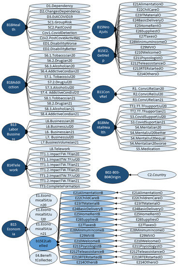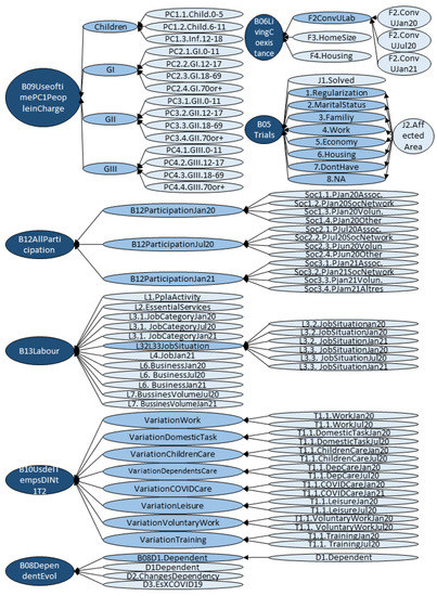 The contributions of this work were illustrated with the particular case of the INSESS-COVID19 dataset, but the methodology proposed is general and might be applied to any other kind of dataset (either coming from a survey or not) provided that the data relate to different thematic blocks (which nowadays is a very common situation). In fact, it has already been used in other real applications with successful results, such as the characterization of a non-profit association in Catalonia (Colla Castellera Jove de Barcelona) or the third-sector entities of three different pilot cities (Mataró (Spain), Prato (Italy) and Varazdin (Croatia)) within the European project SMP-COSME-2021-RESILIENCE 101074115-DIMCARE.
