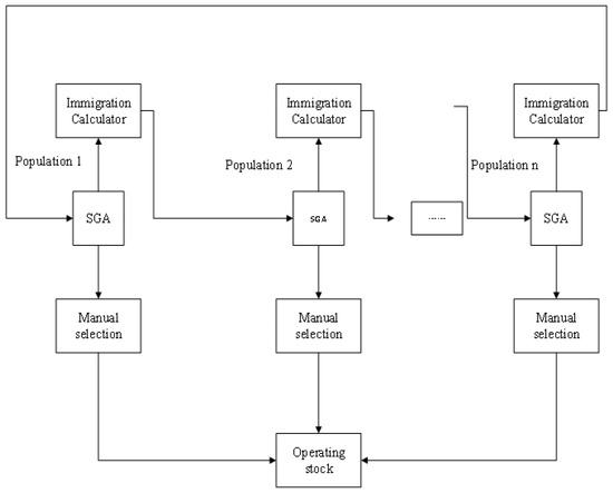 Meanwhile, each subpopulation can be linked using a migration operator to realize the co-evolution of multiple subpopulations, which yields the optimal solution. The optimal solution in the evolutionary generation of each subpopulation is preserved by the manual selection operator, which is also the criterion for determining whether the algorithm converges. In this paper, the minimum number of generations of optimal individuals is maintained as the basis for the end of algorithm operation. The principle of the multi-population genetic algorithm is shown in Figure 7.
