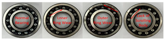 In this paper, for the multi-stage centrifugal fan rolling bearing, three common types of failure are conducted for research and analysis: bearing inner ring wear, bearing outer ring wear and bearing’s lack of the rolling body. Figure 10 shows the petrochemical rotating machinery multi-stage centrifugal fan bearing failure parts.