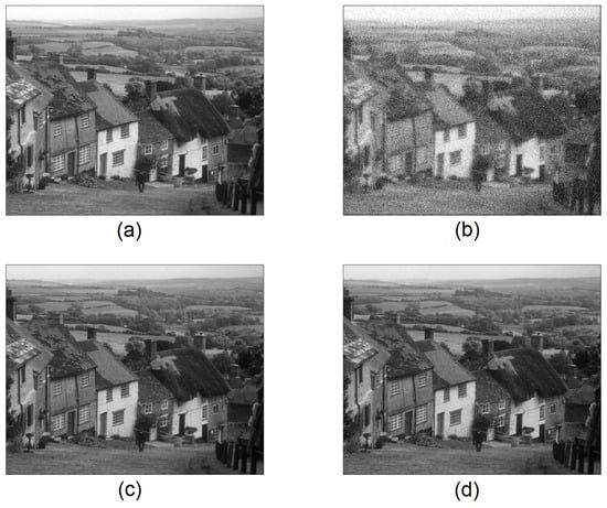 where and . Here, is used to make functional differentiable at zero. The TV model possesses numerous advantageous features; however, it does have one significant flaw. One notable drawback of the TV model is its tendency to transform smooth functions into piecewise constant functions, resulting in staircase effects in the restored images. The repaired photos appear blocky as a result. To mitigate the staircase effects in restored images, one solution is to employ total fractional-order variation (TFOV)-based models [26,27,28,29,30,31,32]. These models have been proposed as an alternative approach to address the limitations of the TV model and reduce the undesirable staircase artifacts.