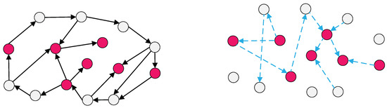 Sketch map of digraphs and . The left is state 1, while the right is state 2.