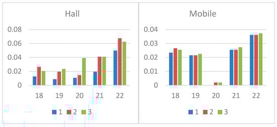In this paper, experiments were conducted on different subblock selection methods, and the total watermark experiments were conducted according to the subblocks selected by different methods. Figure 5 shows the extracted watermark BER (bit error rate) values for each group of experiments under the requantization attack, and the BER is calculated as in Equation (12). The combination of NNZ and Ef is 1 as the screening subblock condition in this paper, 2 is using only NNZ as the screening subblock condition, and 3 is using only Ef as the screening subblock condition. As can be seen from Figure 5, the BER values of 1 are mostly lower than those of 2 and 3, so the combination of NNZ and Ef for selecting subblocks results in better anti-requantization performance.