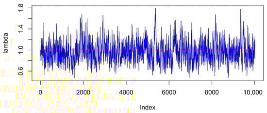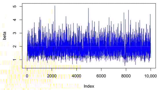 It can be found that the posterior distribution of is a gamma distribution with parameters and , so the samples of beta can be generated directly using the gamma distribution. The posterior distribution of is not a common distribution, and after a quick visualization, the figure is found to be similar to that of the normal distribution, so the sample of lambda is generated using the Metropolis–Hastings (MH) algorithm. The samples of and are generated using the following Algorithm 2.