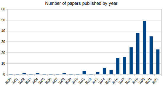 Ultimately, 252 references were examined. Due to the ambiguity of the word fashion and the lack of association with the issue under study, 65 articles were discarded after reading them. Many of these articles refer to fashion trends in the context of AI used in e-commerce rather than specifically in the fashion business. For the literature review, 245 research articles were read. The distribution of documents over the years is shown in Figure 2, and it has been observed that the number of papers published in the previous three years has significantly increased.
