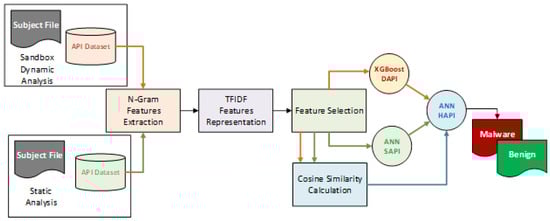 - To utilize the extreme gradient boosting (XGBoost) and artificial neural network (ANN) algorithms in developing two prediction models based on features extracted from both dynamic and static analyses. The output scores of these models, along with similarity features, are then used to build a classifier using ANN algorithms for decision-making.
