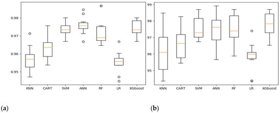 Figure 5 illustrates the detailed accuracy results of the 10 K-fold. It shows that the ANN achieves the best performance compared to the other techniques studied, while the LR achieves the worst accuracy. Similarly, both ANN and XGBoost outperform the other studied techniques in dynamic analysis.