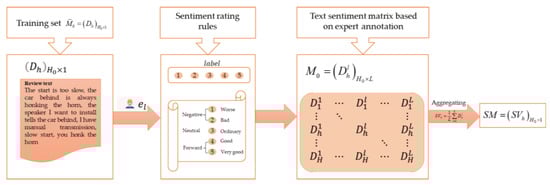 Eight experts were hired to discuss and formulate the sentiment rating rules for automobile review texts; they logged in to the annotation system to annotate the above-mentioned obtained review texts. Finally the matrix