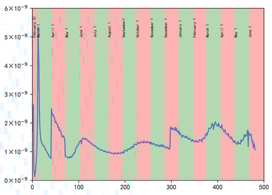 Diagram of the time-varying transmission rate from 21 February 2020 to 15 June 2021.