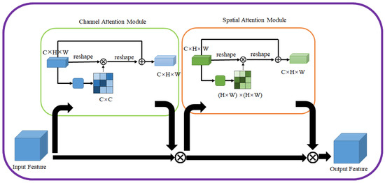 As shown in Figure 3, we adopted a dual-attention mechanism with channel and spatial concatenation to complete feature extraction and fusion. In Figure 3, the solution of the channel and spatial attention mechanism is as follows.