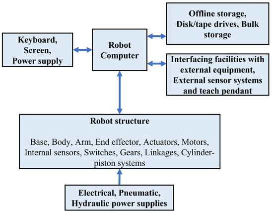 Industrial robots are complex and require continuous monitoring for optimum performance and minimum downtime. A robot is described by the International Standards Organisation (ISO 8373) as a machine that has automatic control, reprogramming, and manipulation capabilities [70]. This machine is flexible and has numerous configurable axes. It is made to be used in a variety of industrial applications and can be either stationary or mobile. An IR is a general-purpose programmable machine that possesses the characteristics of the human arm. It can be programmed by its computer to move its arm through sequences of motion to perform some useful tasks. It can perform a similar motion over and over until it is reprogrammed to perform other functions. Many industrial operations involve robots working together with other equipment. The main features of the robot include: