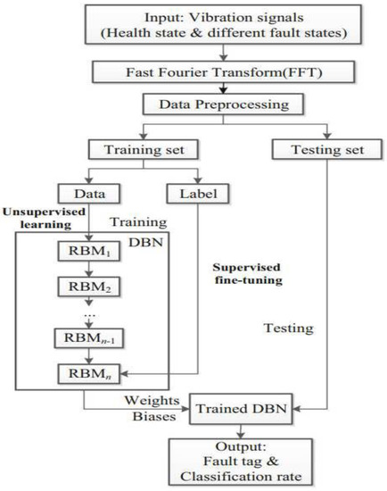 Figure 13. DBN-based framework for fault diagnosis of the induction motor used in manufacturing process [160].