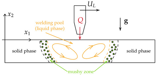 - Piekarska, W.; Kubiak, M. Modeling of thermal phenomena in single laser beam and laser-arc hybrid welding processes using projection method. Appl. Math. Model. 2013, 37, 2051–2062. [Google Scholar] [CrossRef]