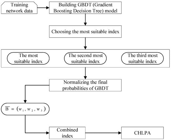 To overcome the cold-start problem associated with friend-based recommendations, this study delves deeply into the information contained within the network structure. Specifically, it emphasizes that the social closeness of different nodes varies and proposes CHLPA as an adaptive method for constructing SIHI that is suitable for circle structure characteristics. To accurately capture the compatibility between indexes (such as SIHIs and SLPAs) and the network feature structure, the GBDT model was designed, which employs network feature indicators, such as node clustering and centrality within the local network, to select the appropriate indexes. The process of CHLPA is depicted in Figure 3. CHLPA deals with the cold-start issue in network analysis by utilizing heterogeneous indicators, combining them through weighted or comprehensive methods, selecting appropriate indicators based on network characteristics, and leveraging the power of the GBDT for accurate predictions and decision-making. This approach improves the understanding and utilization of network information, particularly in the context of integrated marketing and brand community analysis.