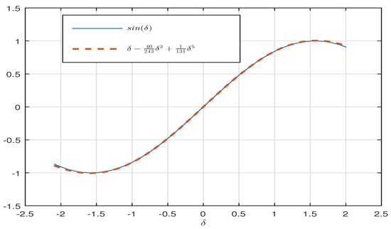 Using the Taylor expansion, can be approximated by the following polynomial functions [,]: