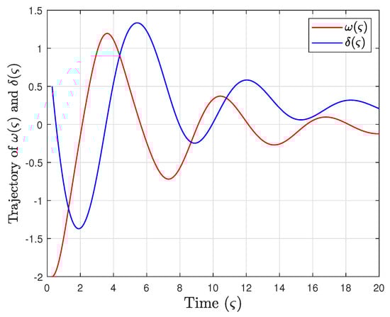 Now, we consider a power system with load disturbance. Based on the definition of TFO of order , this system is modeled by the following fractional-order nonlinear model []:
