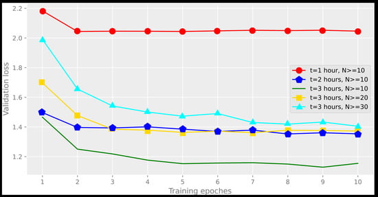 The mean squared log-transformed error (MSLE), an effective indicator to measure the difference between predicted values and actual values, is adopted as the evaluation metric in this paper. The MSLE is a variant of MSE (mean squared error), and it is frequently applied in regression tasks and popularity prediction studies [,,]. The definition of MSLE is shown as follows: