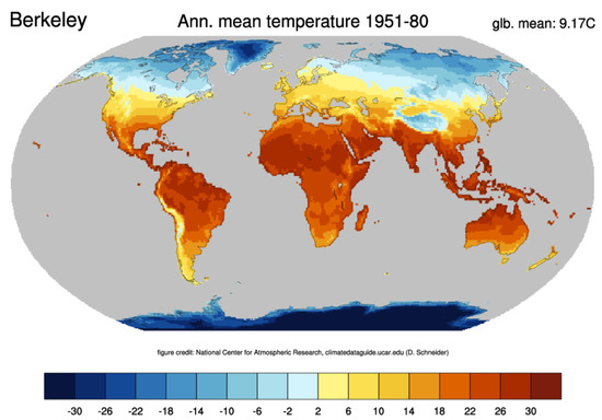 - National Center for Atmosferic Research. Global Surface Temperatures: BEST: Berkeley Earth Surface Temperatures. 2023. Available online: https://climatedataguide.ucar.edu/climate-data/global-surface-temperatures-best-berkeley-earth-surface-temperatures (accessed on 3 June 2023).