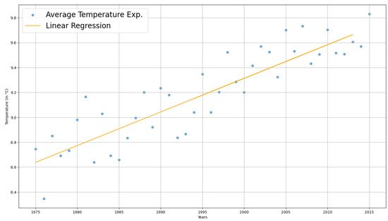 On the other hand, due to the high economic and social impacts associated with climate change, it is essential to understand the causes and identify the patterns of the obtained data to make correct predictions. According to Zheng et al. [36], the construction of a reliable model based on experimental data and the relationship between temperature and the concentration of gases in the atmosphere such as carbon dioxide , nitrous oxide () and methane , is the first challenge to address the climate change problem. Zheng’s study used various learning techniques, such as linear regression, support vector machines, and random forests to build an accurate model that would identify changes in the atmosphere’s increasing temperature, dominated mainly by the increase in the temperature of due to its higher concentration within greenhouse gases.