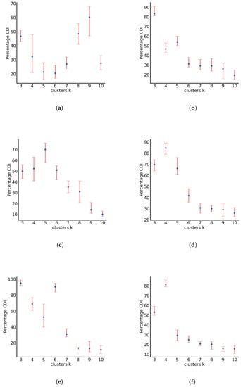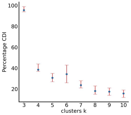 - Identify the number of clusters with the highest average CDI for all clustering possibilities (i.e., splitting from 3 and up to 10 clusters) and locate the respective dominant cluster centres. Verify if the variance in bounds is low (i.e., less than 30%)