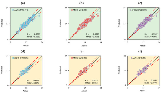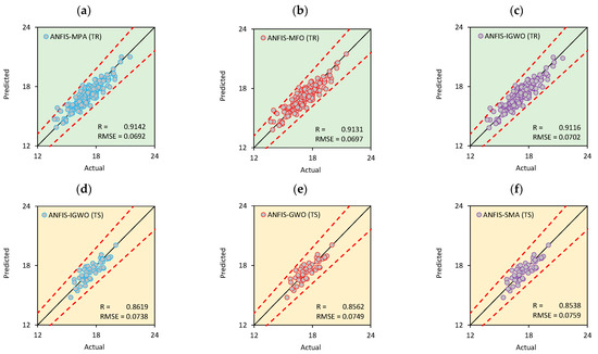 - Golafshani, E.M.; Behnood, A.; Arashpour, M. Predicting the compressive strength of normal and High-Performance Concretes using ANN and ANFIS hybridized with Grey Wolf Optimizer. Constr. Build. Mater. 2020, 232, 117266. [Google Scholar] [CrossRef]