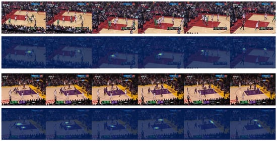 As shown in Figure 4, we considered the visualization of the STAB-GCN attention maps on the NBA dataset. The results imply that STAB-GCN can capture the related actors and the most important group activities by utilizing the spatial attention unit, the temporal attention unit, and the graph convolutional network, which greatly improves the accuracy in the recognition of individual actions and group activities in the video clips.