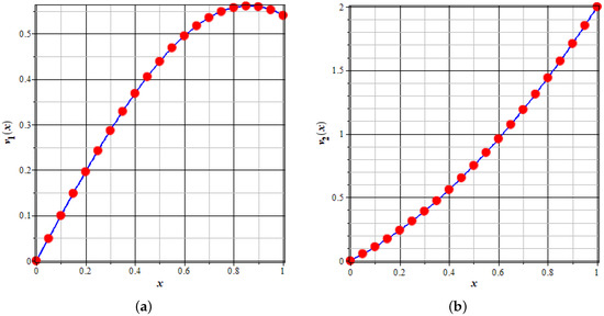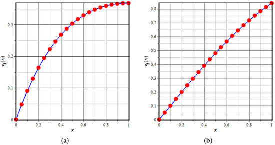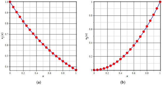 Now, we substitute the collocation points in Equations (12) and (13) to obtain an algebraic equation system that can be solved easily. The collocation points in this case are the Chebyshev nodes, which are provided as