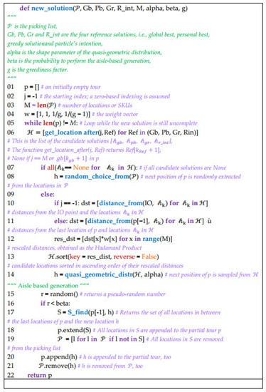 Figure 5 provides a Python 3.9©-based pseudocode, showing the generation of a new solution