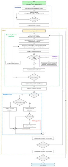 Figure 1, where it is assumed that the PSO ends when the number of iterations without improvement exceeds a predefined threshold value. The pseudocode is written using a Python 3.9© style, and so, indentation is not only for readability but it also defines different blocks of code.
