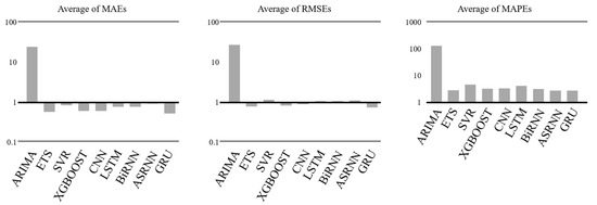 - Our GRU model outperformed ARIMA, exponential smoothing (ETS), extreme gradient boosting (XGBoost), SVR, CNN, and LSTM models in evaluation experiments.