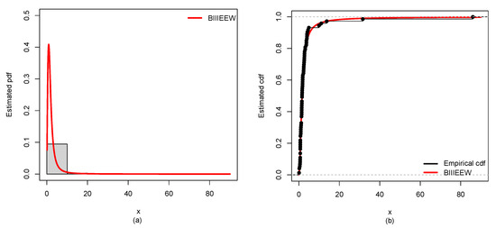 If Weibull rv with CDF and PDF , then using Equations (22) and (23), we generate CDF and PDF of the BIIIEE-Weibull distribution (BIIIEEWD) as: