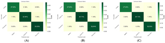 Comparison between the performance of the BFLPD framework under different classifiers. (A) Shufflenet v2 [20], (B) Mobilevit [22], (C) Levit [23].