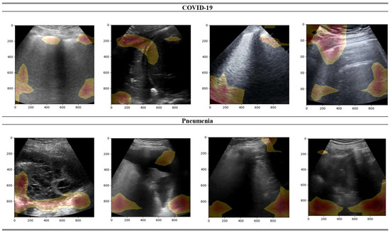 In Figure 4, a heatmap visualization of the predictions of BFLPD framework is portrayed on randomly chosen samples from the test set. This heatmap specifies valuable insights into the regions of attention and relevance that contributed to the model’s classification decisions. By overlapping the heat map with the ultrasound images, we were able to visually identify the regions that played significant roles in the classification process. Intense and bright colors suggest higher activation and importance, while cooler colors represent regions of lower importance. This visualization technique allowed us to understand which specific features or patterns captured by the ultrasound images influenced the prediction of the BFLPD framework. It can be observed that the BFLPD focused on certain areas that were revealing of COVID-19 or pneumonia conditions. These areas may include specific lung regions, lesions, or characteristic patterns associated with distinctive diseases. This interpretability enhances the trustworthiness of the model’s predictions, granting medical specialists and researchers the chance to gain deeper insights into the diagnostic process.