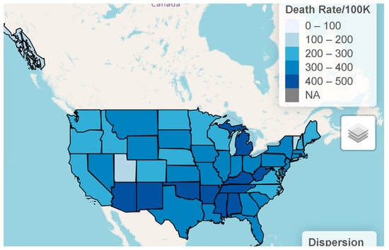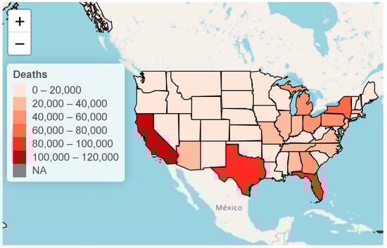- USA Facts. US COVID-19 Cases and Deaths by State. 2022. Available online: https://usafacts.org/visualizations/coronavirusCOVID-19-spread-map (accessed on 2 November 2022).
