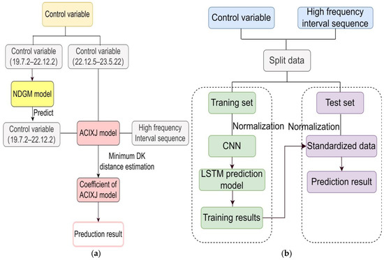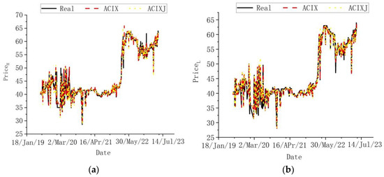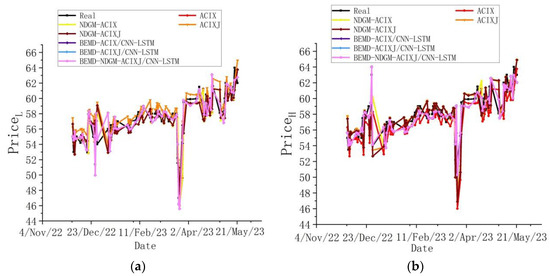 - First, assuming that the true value of interval price of carbon emission rights is . The endpoint values of all experimental interval data were substituted into Equation (1) to form the predicted interval as .