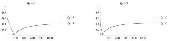 In Figure 9, we analyze the behavior of the solutions for different values of in comparison with each other.