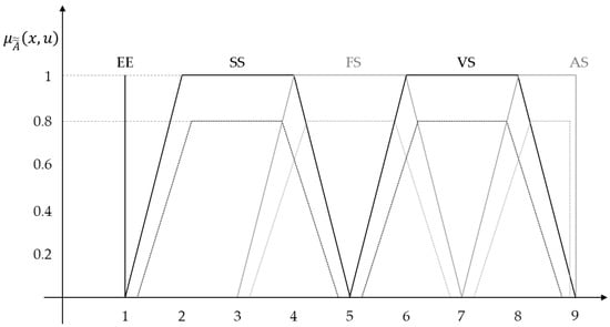 Due to the power of fuzzy logic to overcome the problems of indeterminacy and inconsistency, fuzzy sets are used in decision-making processes in which their application allows decision-makers to convert the linguistic terms or responses to be evaluated with a degree of certainty [62]. To accommodate ambiguity, fuzzy sets allow for membership inside an interval between two real values. Accordingly, fuzzy sets allow decision-making problems to be resolved in a more flexible and precise manner.