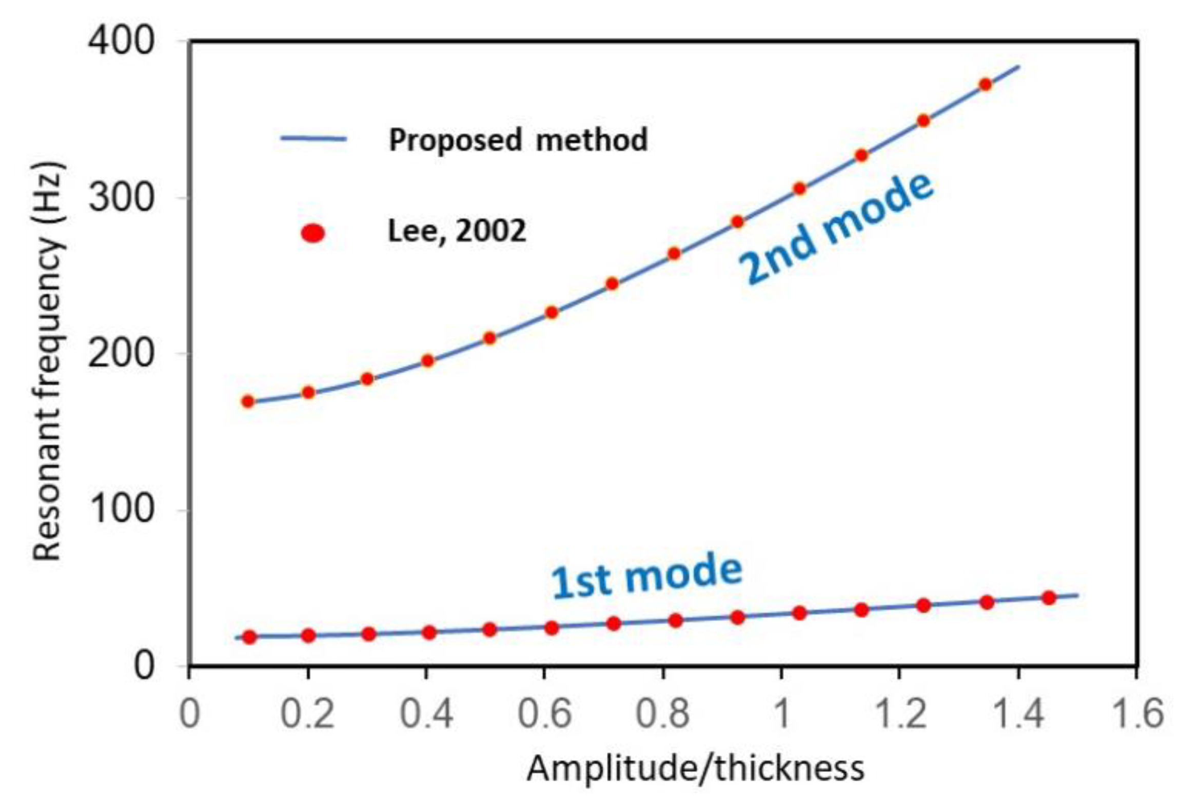 - Anvariyeh, F.S.; Jalili, M.M.; Fotuhi, A.R. Nonlinear vibration analysis of a circular plate-cavity system. J. Braz. Soc. Mech. Sci. Eng. 2019, 41, 66. [Google Scholar] [CrossRef]