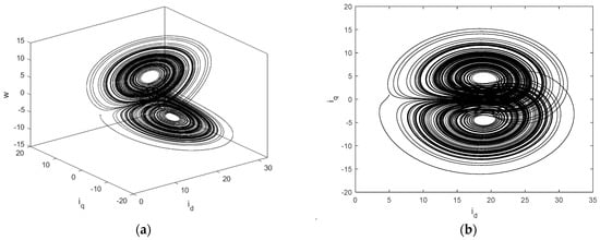 - Jing, Z.; Park, J.B.; Joo, Y.H.; Zhang, B.; Chen, G. Bifurcations and chaos in a permanent-magnet synchronous motor. IEEE Trans. Circuits Syst. I Fundam. Theory Appl. 2002, 49, 383–387. [Google Scholar]