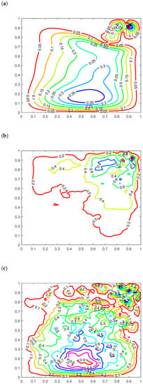 Graph of the functional to Example 1 with (a) ; (b) ; (c) .