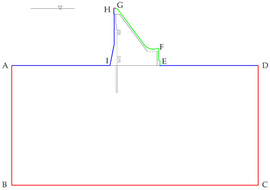 The boundary conditions of the model should be pre-determined before performing numerical calculations. To better illustrate the setting of the boundary conditions, a schematic of the boundary setting for a 2D RCC dam is shown in Figure 3. For the seepage field, the boundaries below the upstream water level (i.e., AHI) and the downstream channel boundary (i.e., DE) were set as constant head boundaries. The surrounding intercept boundaries (i.e., AB, BC, and CD) as well as the boundary at elevations above the upstream water level (i.e., GH), were set as no-flow boundaries. The boundaries at elevations below the upstream water level and above the downstream channel (i.e., EF and FG) were defined as the permeable layer boundary. The permeable layer boundary is a hybrid boundary, a detailed description of which can be found in the literature [33]. For the stress and deformation calculation, the displacements in the three directions of the model bottom surface (i.e., BC) were constrained, and only the lateral displacements in the x and z directions of the other side surfaces were constrained (i.e., AB and CD). In the model calculation process, the loads mainly consider the seepage pressure and the self-weight.
