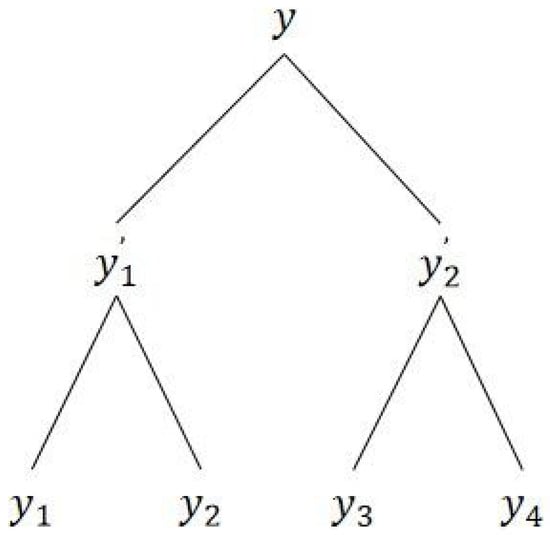 Table 1 depicts a context , where a, b, and c are three one-valued attributes and y is a many-valued attribute. The g-tree for attribute y is displayed in Figure 1. In the g-tree, there are five cuts: , , , , and . In Table 1, the cut is used. In Table 1, for attribute y, by replacing the finer cut with the coarser cut , which increases the granularity sizes, the context is transformed into the context (i.e., Table 2).