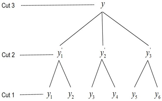 In addition, the notions of a granularity tree, cuts, and increasing the granularity sizes are given. A granularity tree (g-tree) of attribute m is a rooted tree, in which each node of the tree is labeled as a unique attribute name, and if, for any node v, the children of node v are nodes , then must be a partition of . For a set of nodes in the g-tree of attribute m, if, for each leaf node , there is only one node on the path from the root m to , the set of nodes is a cut at certain granularity sizes in the g-tree. For two cuts in a given g-tree and , if, for any , there exists such that , is called a refinement of , denoted by . Increasing the granularity sizes of an attribute m replaces the existing finer cut () of the attribute m with another coarser cut () of the attribute m, where and are two different cuts in the g-tree of attribute m, and .