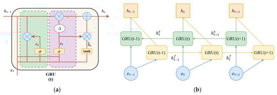 GRU and BiGRU structure. (a) GRU structure. (b) BiGRU structure.